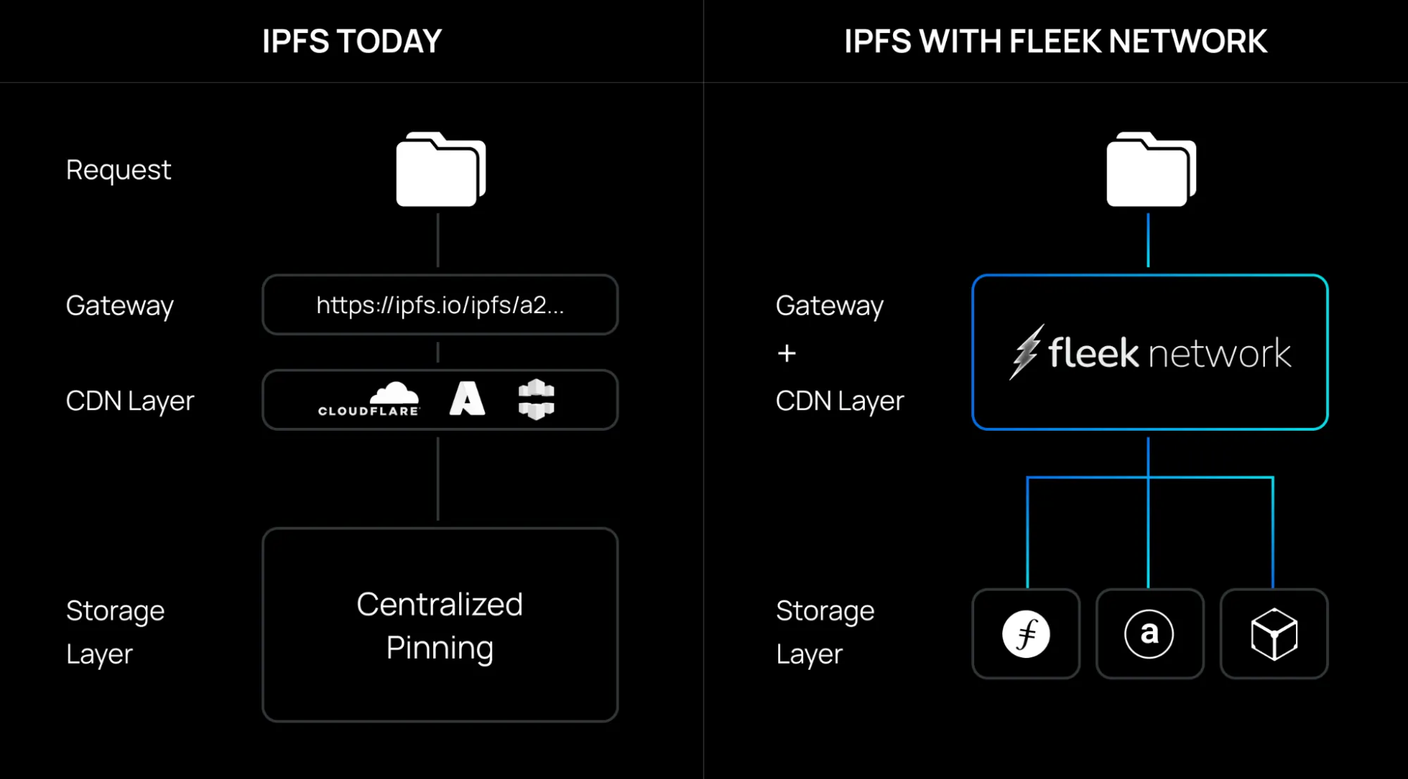 Fleek Network can serve as a high-performance, decentralized IPFS gateway with its built-in file system integration.