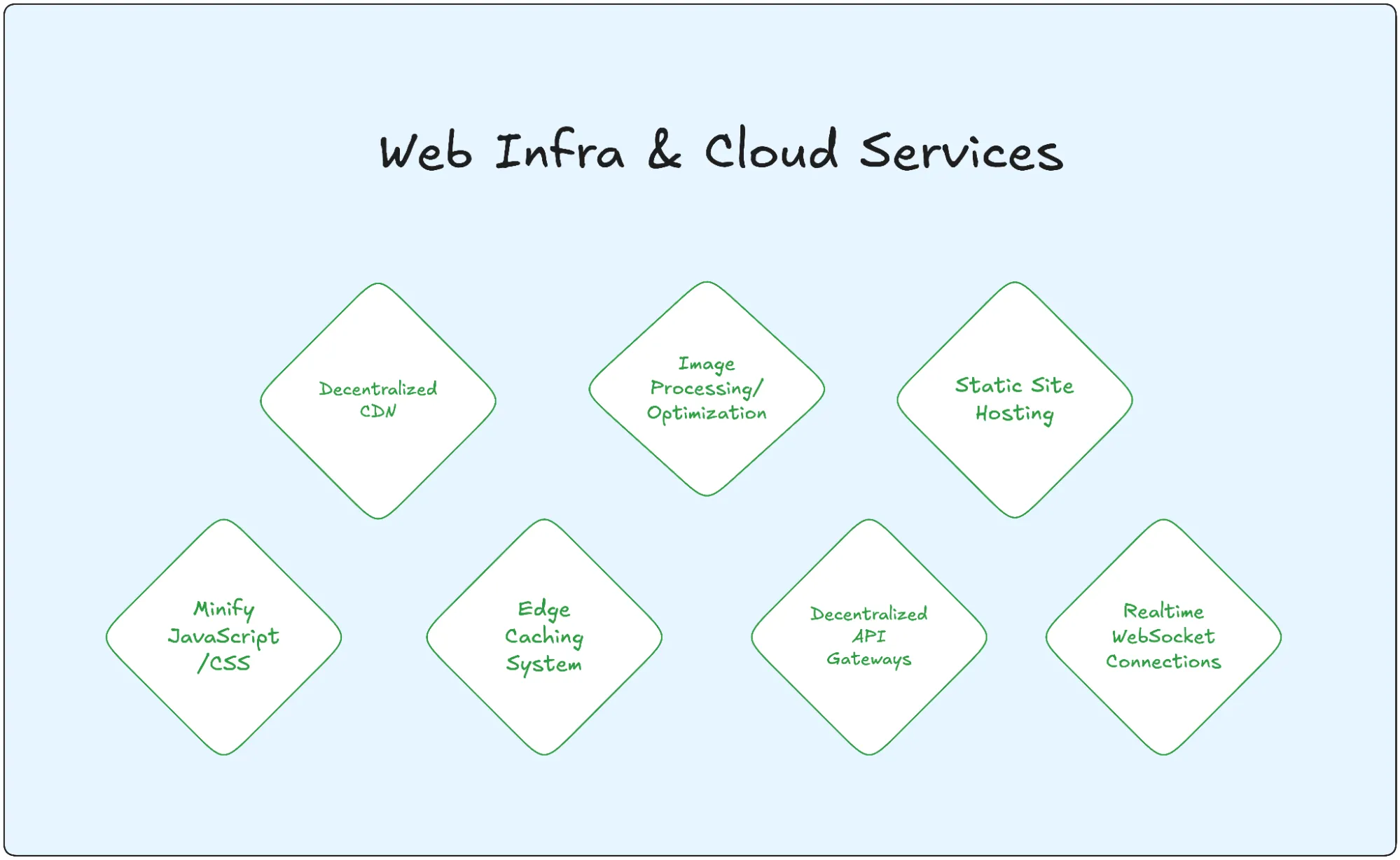 This section will explore the following web infra & cloud services: decentralized CDNs, edge caching, image optimization, decentralized API gateways, and real-time WebSocket connections.