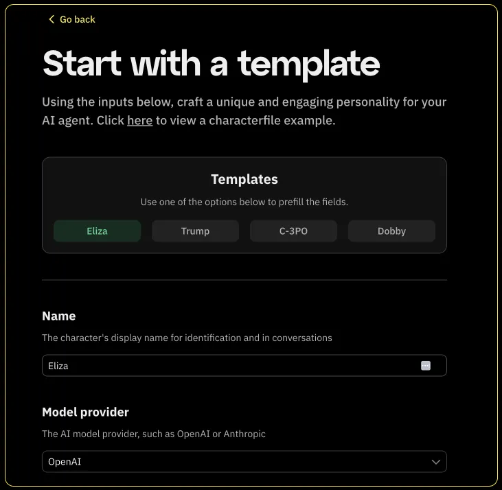 Clicking one will prefill the fields below, allowing you to start with a specific personality.