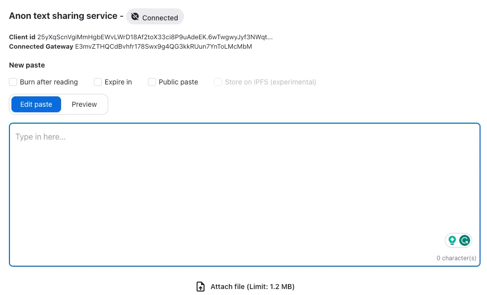 A great example of building with Nym is Pastenym– an anonymous messaging service, that allows users to send end-to-end encrypted texts wallet-to-wallet. Users can choose to have the message burnt after reading, expire after a set amount of time, have it stored on IPFS, or have it not encrypted at all.