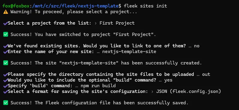 💡 This code takes the NextJS template from the Fleek.xyz template library and automatically kickstarts your project. You can access an expanding library of other application and framework templates, including Lens, Astro, React, and more here.
