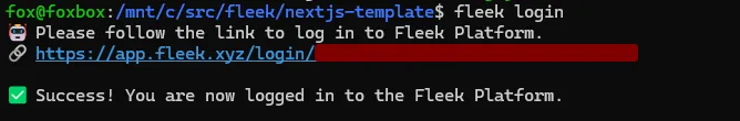Click on the link displayed to log into your Fleek account. You should see a Success! You are now logged in to the Fleek Platform.