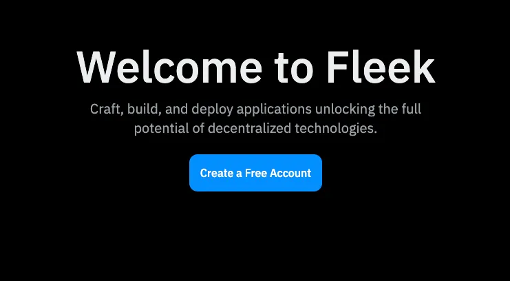The first thing we’ll need to do is create a Fleek account: head over to fleek.xyz, and click on the Create a free account button.