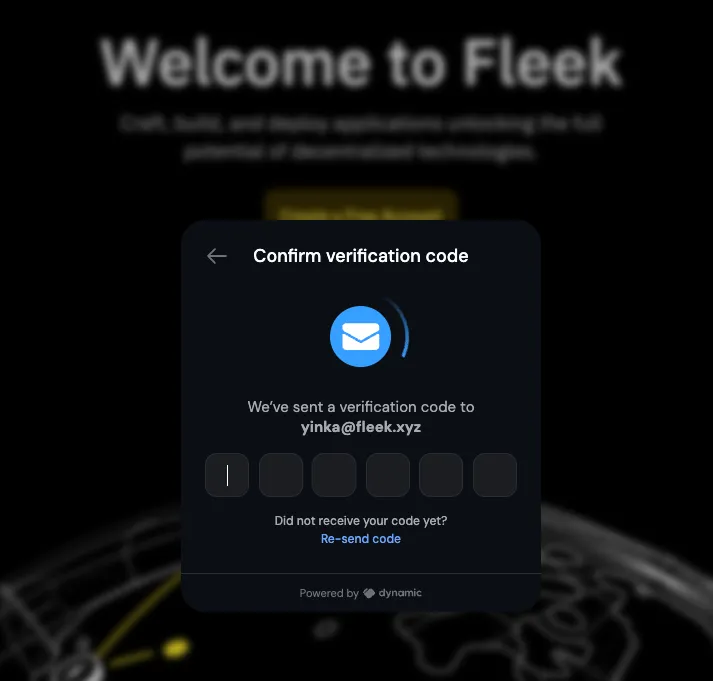After the code is verified, you’ll be logged in and redirected to the Fleek Dashboard.