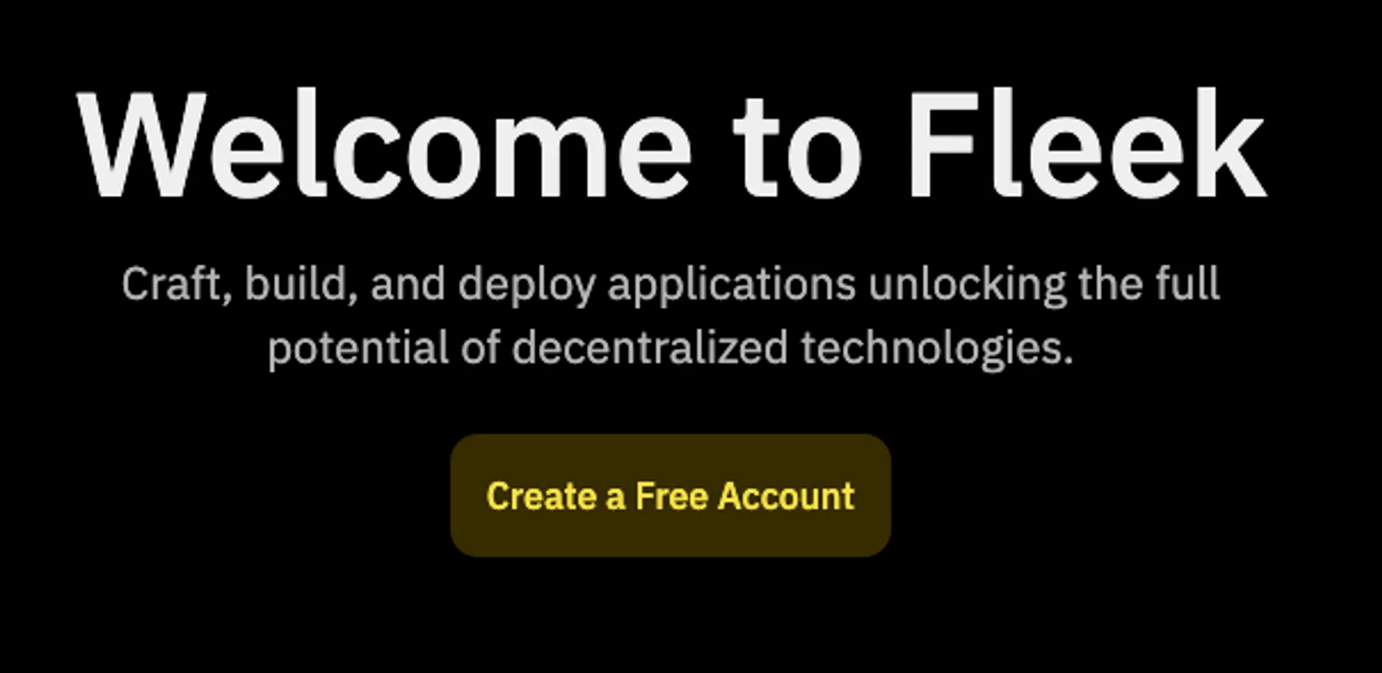 The first thing we’ll need to do is create a Fleek account: head over to https://fleek.xyz/dashboard, and click on the Create a Free Account button.