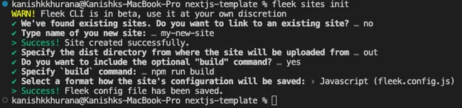 This will globally install the fleek-cli onto your machine. Once installed, open the nextjs-template project in VSCode, and log into your Fleek account via the CLI. This will enable us to run CLI-related commands directly from our terminal.