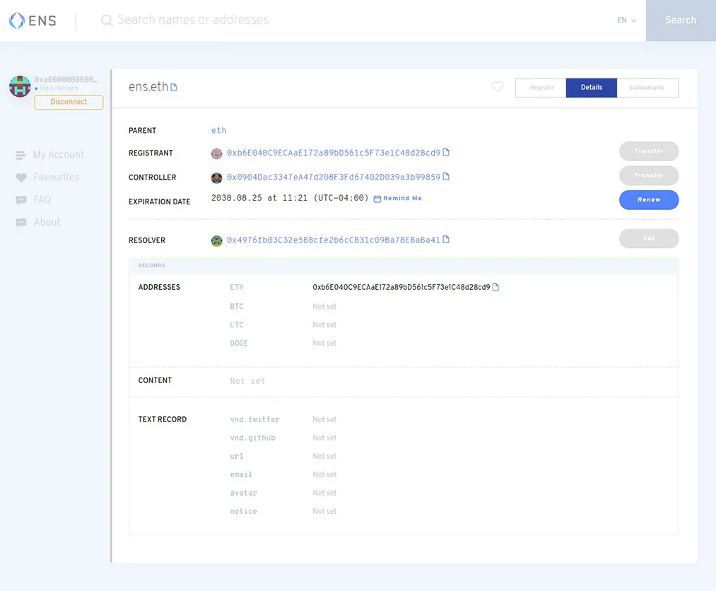 Once your transaction is successful, you will see a page similar to the one above (using the ens.eth domain as an example). Let’s go over the details on this page.